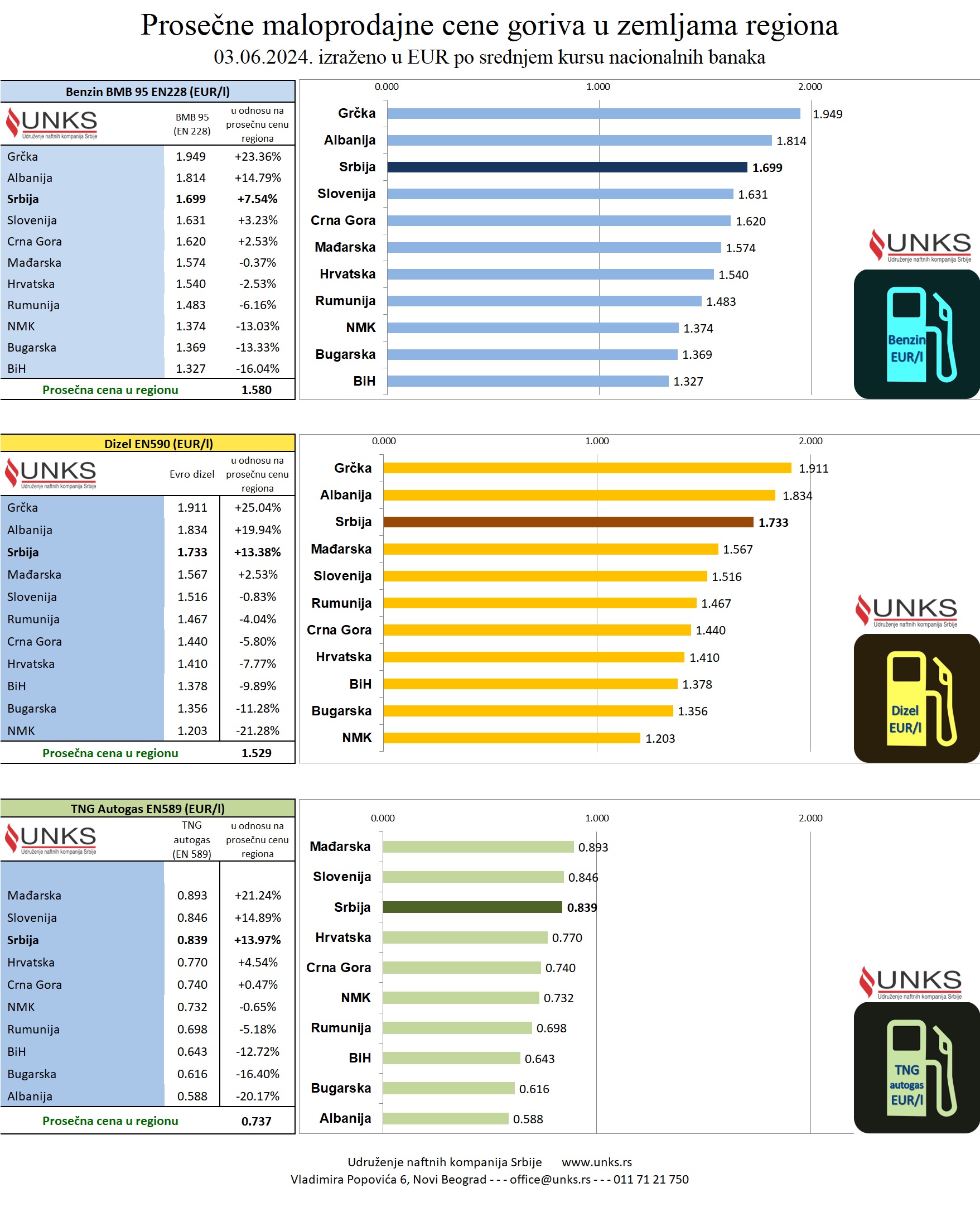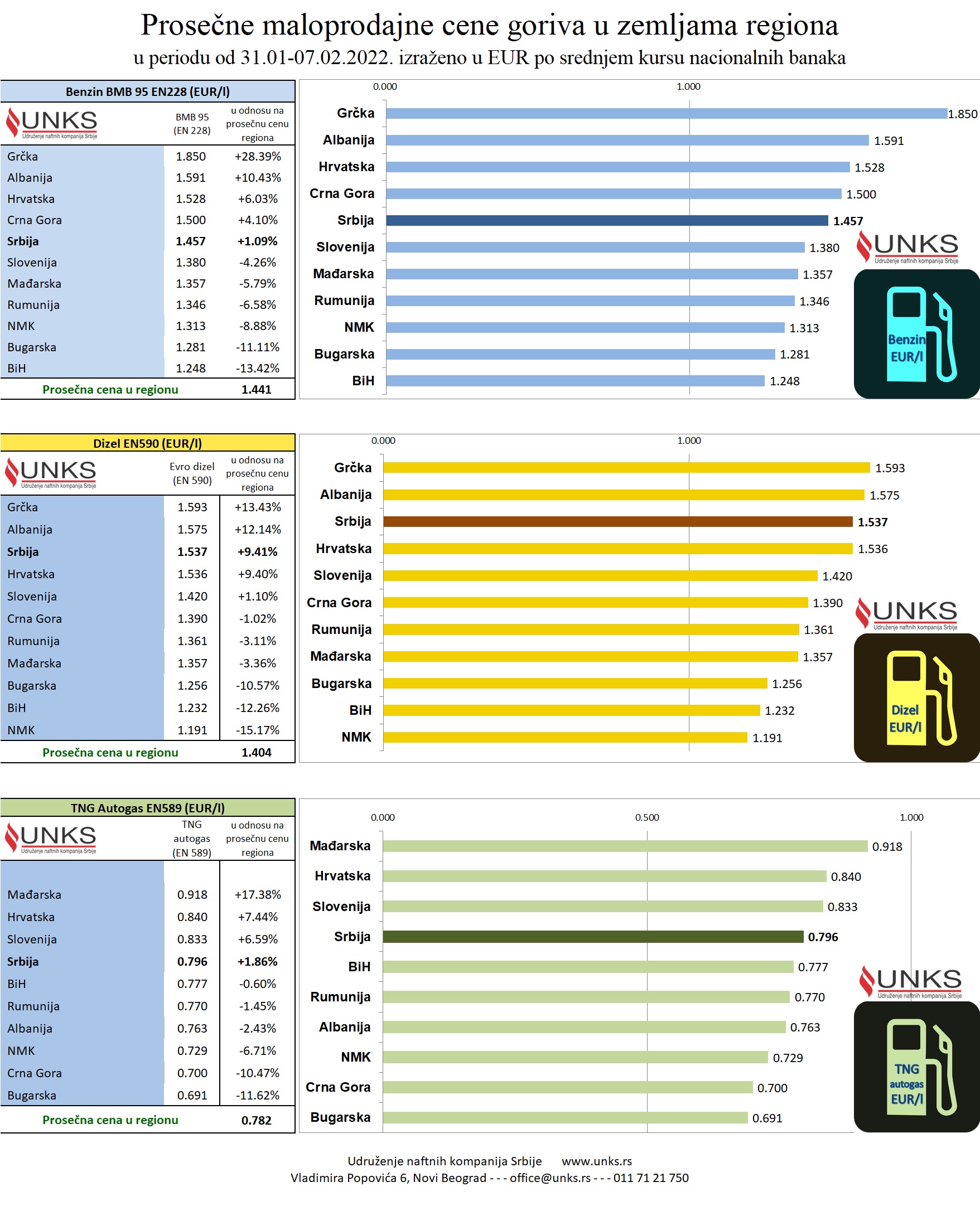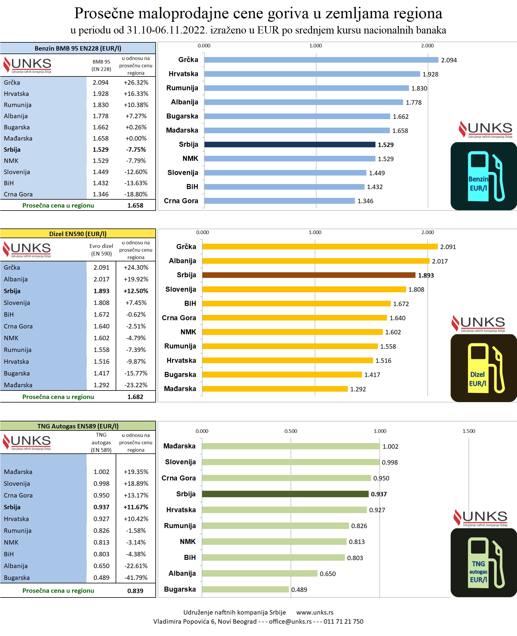 Pregled prosečnih maloprodajnih cena motornih goriva